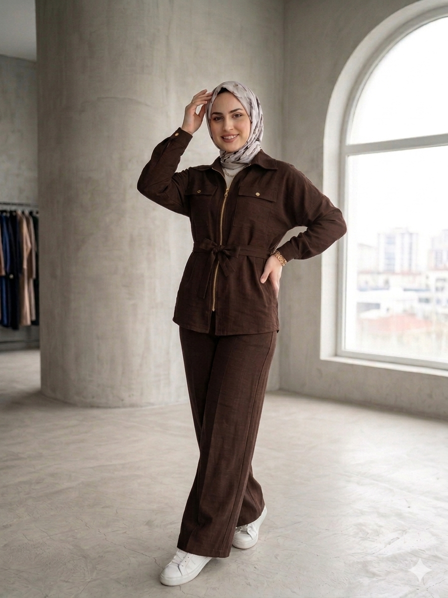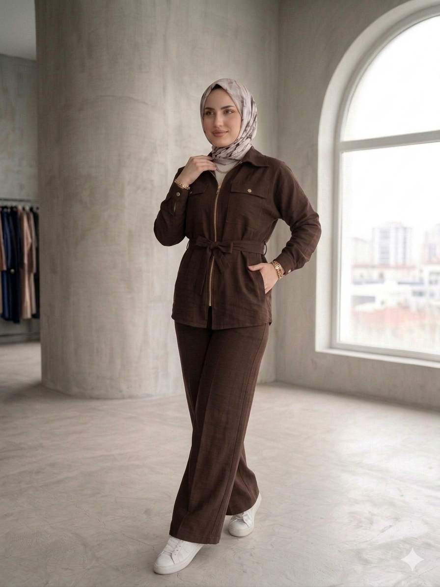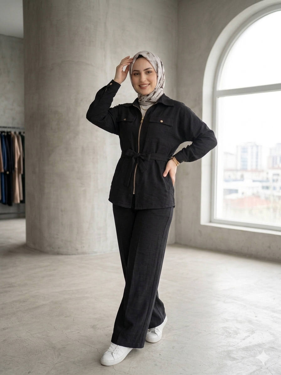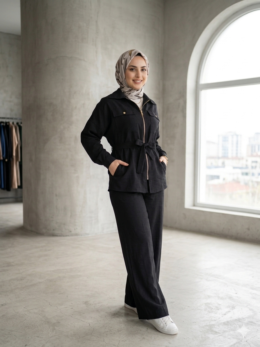 • Üst Tasarım: Fermuar detaylı, göğüs cepli ve belden bağlama detayıyla vücut formunuza göre ayarlanabilir şıklık. (Boy: 75 cm)