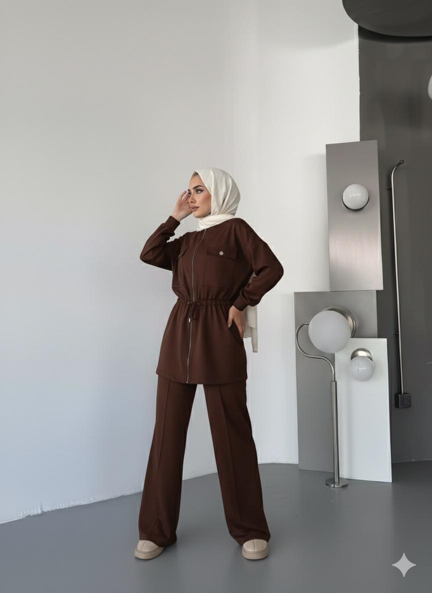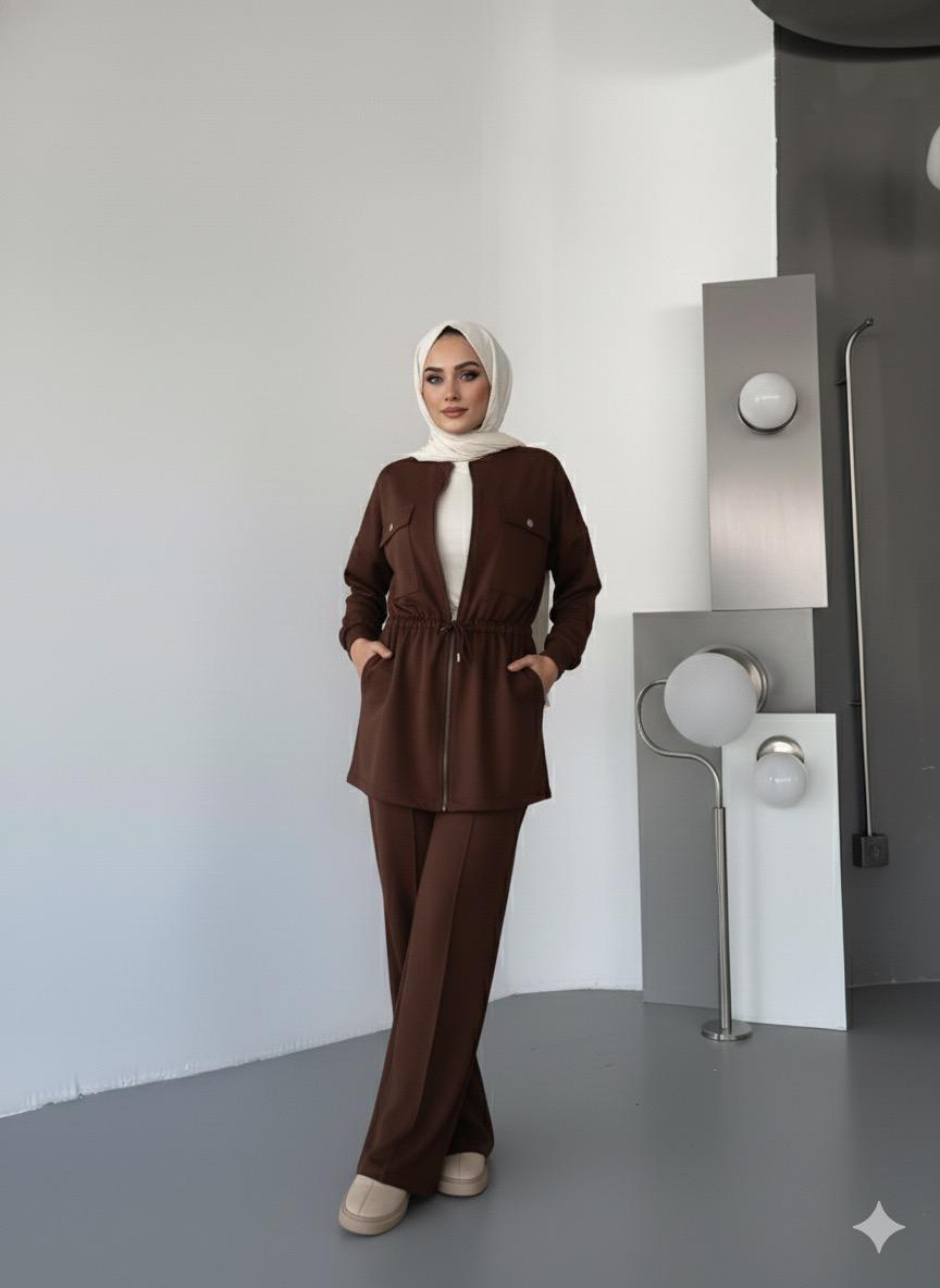 Kahverengi Oysho Bel Büzgülü İkili Takım