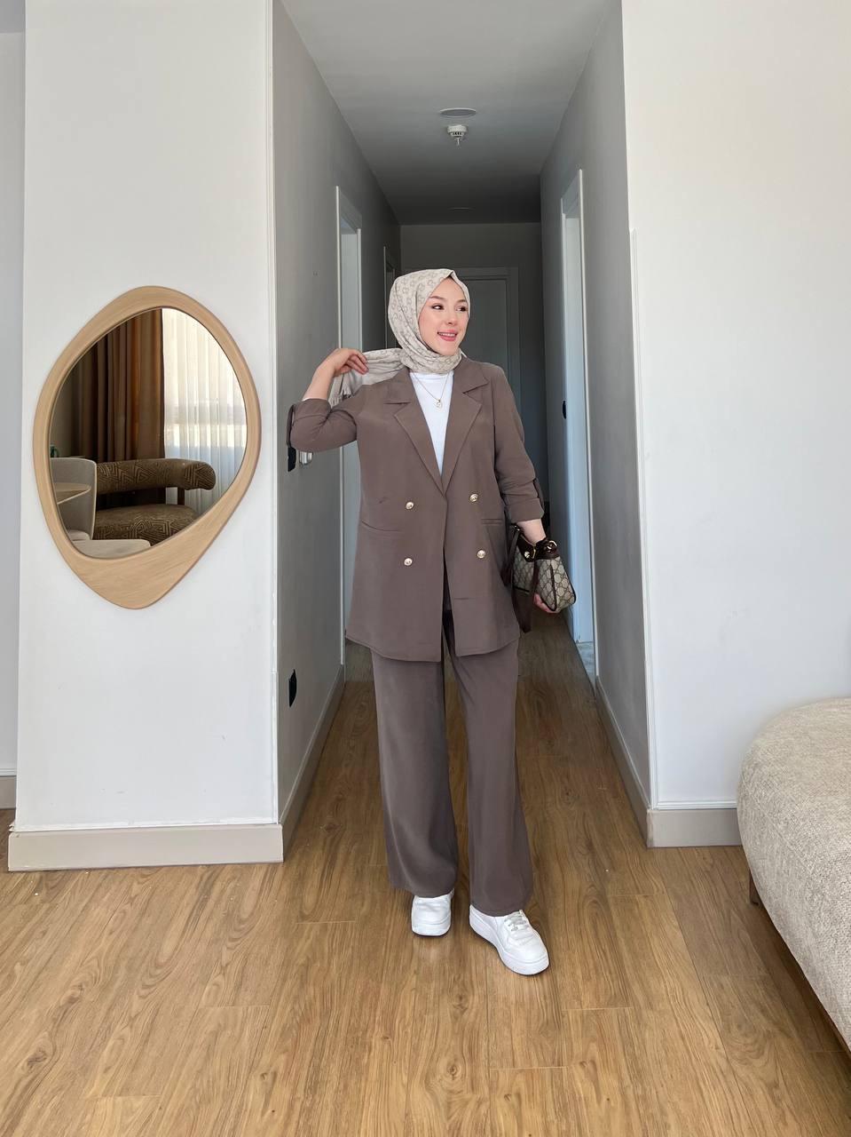 - Rahat kesimi ile günlük kullanım için ideal, oversize kalıpta tasarlanmış ceket takımı.- Her yaş grubuna hitap eden, geniş beden skalasıyla herkesin rahatlıkla tercih edebileceği bir ürün.- Kadın özel olarak üretilmiş, şıklığı ve konforu bir arada sunan tasarım.- Yüksek kaliteli dokuma kumaşı sayesinde uzun süreli kullanım vaat ederken, dayanıklılığından ödün vermez.- Nötr tonlardaki kahverengi rengiyle kolayca kombinlenebilir; zamansız bir stil oluşturmanıza olanak tanır.- Sade ve düz deseniyle minimalist tarzınızı ön plana çıkarırken, her ortama uyum sağlayacak zarif bir görünüm sunar.- Normal boy kesimiyle vücut hatlarınıza uygun bir oturuşa sahip olup, hareket özgürlüğünüzü kısıtlamaz.- Yerli üretim olması gerekçesiyle Türk malı kalitesini yansıtan bu takım, yerel ekonomiye destek olmanız için idealdir. - Tek parça halinde gelen bu set, gardrobunuzda temel parçalardan birine dönüşecek şekilde tasarlanmıştır.