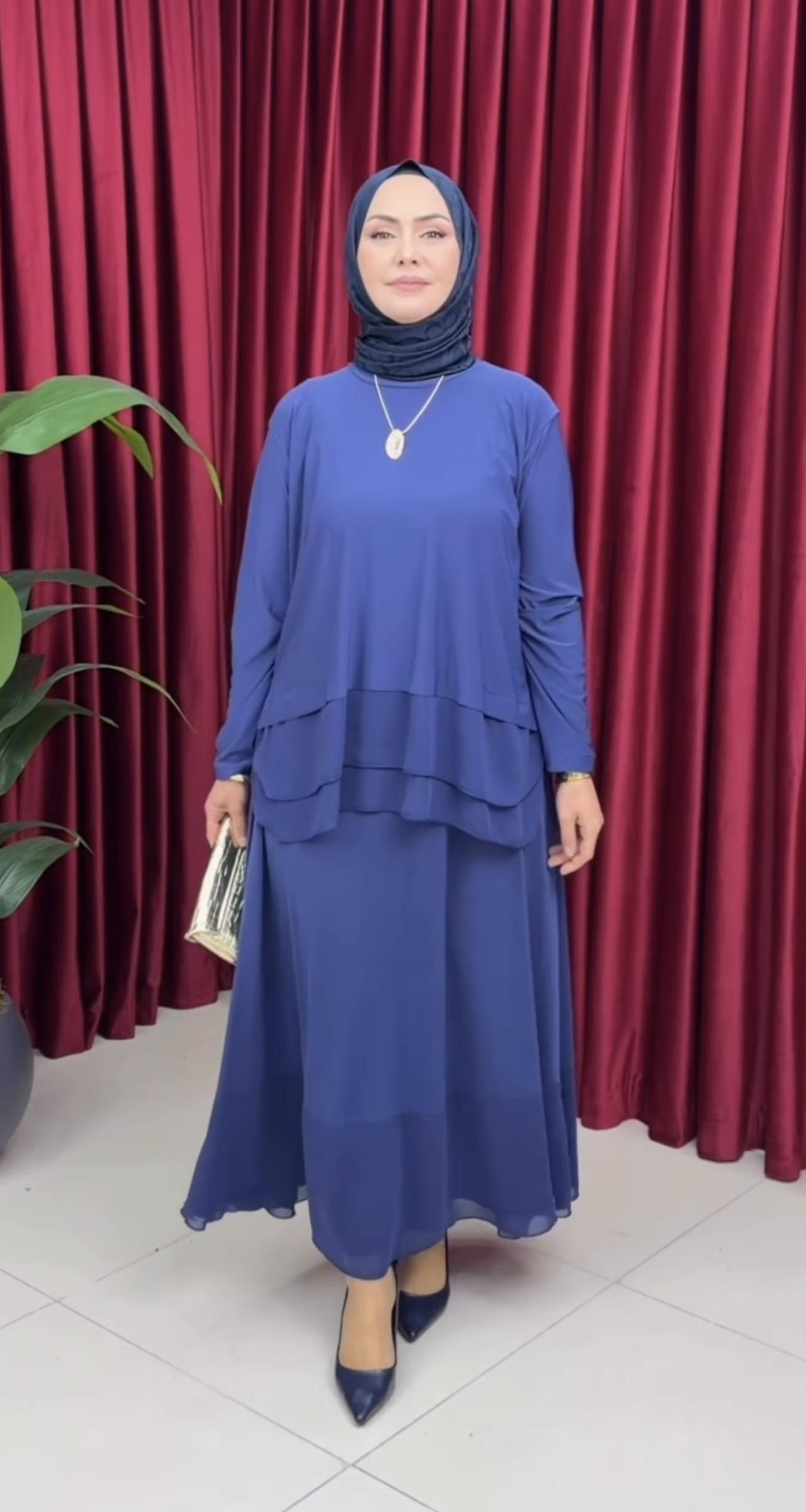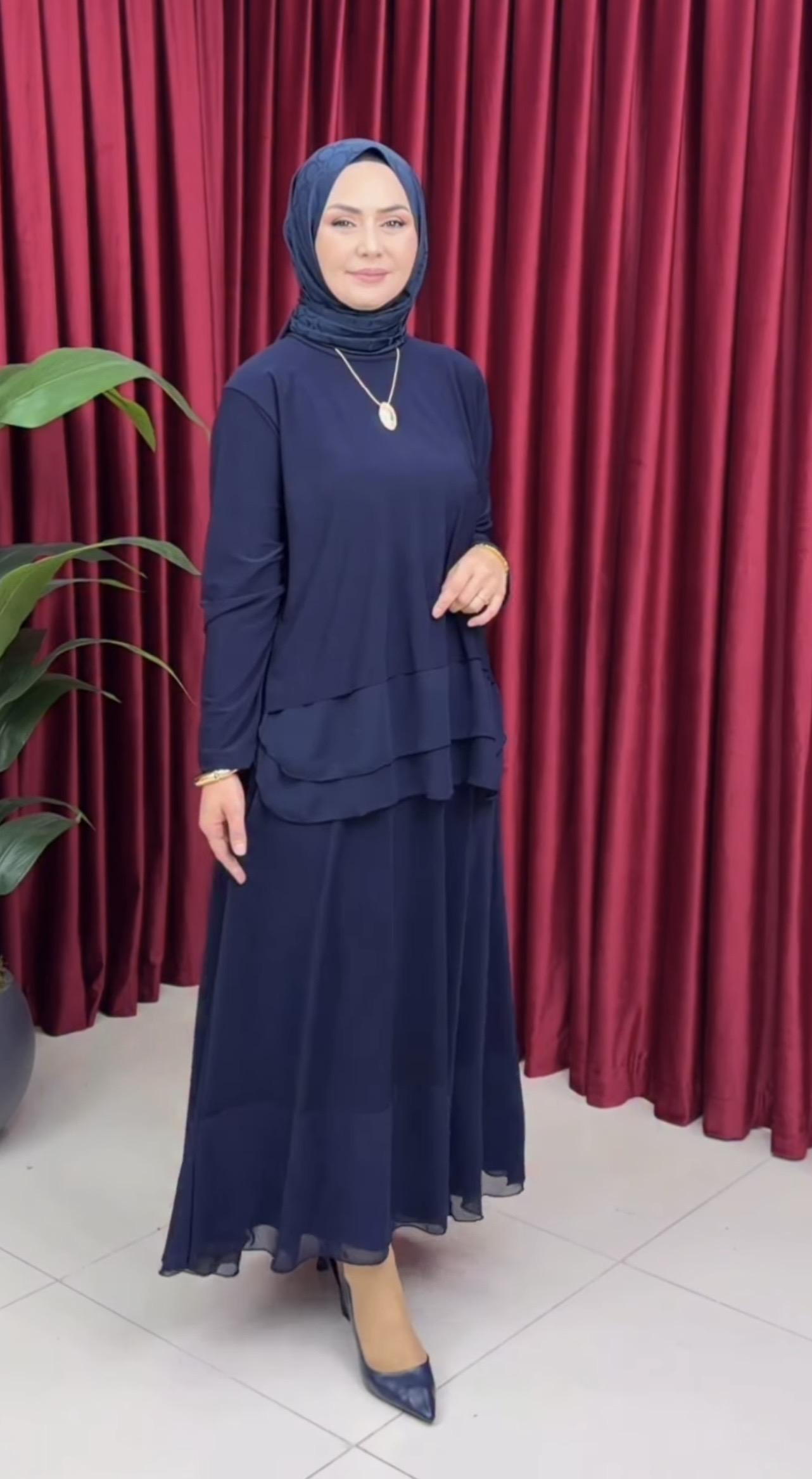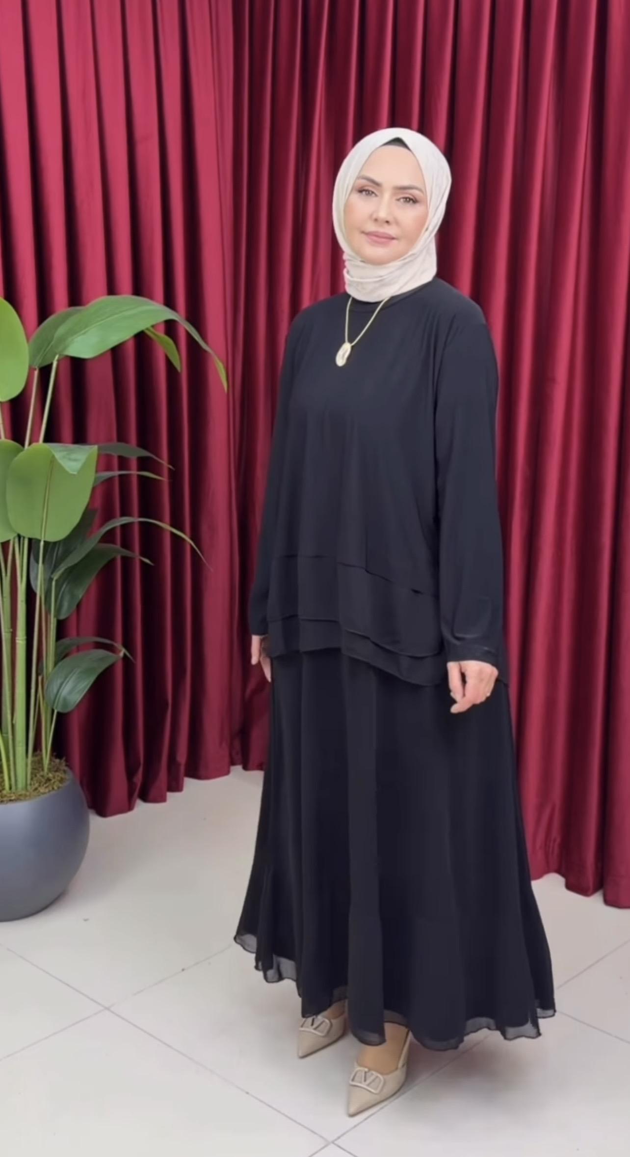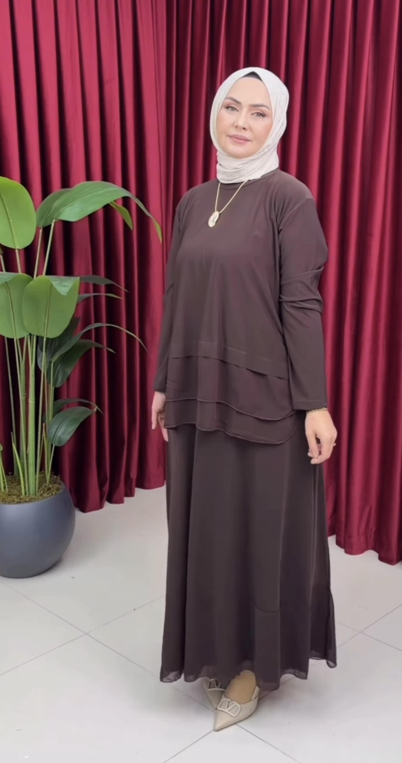 • Tasarım: Bluzun etek ucundaki zarif katlı şifon detayları, takıma hareketli ve modern bir hava katar.