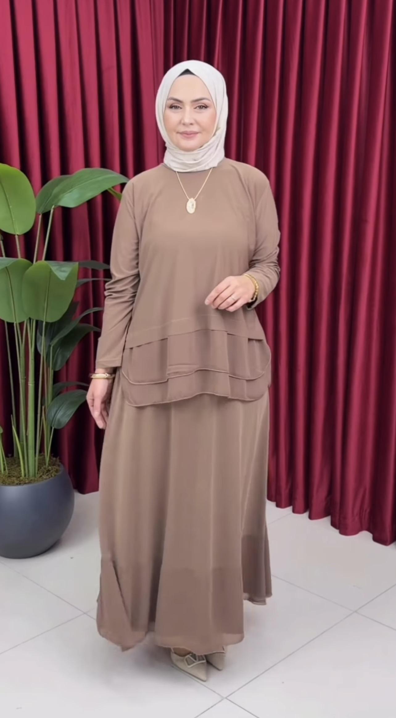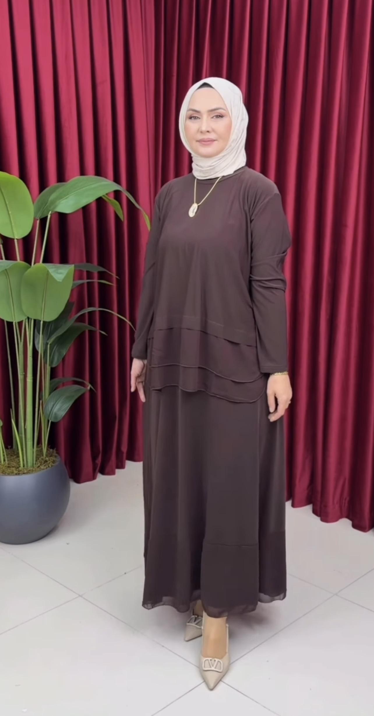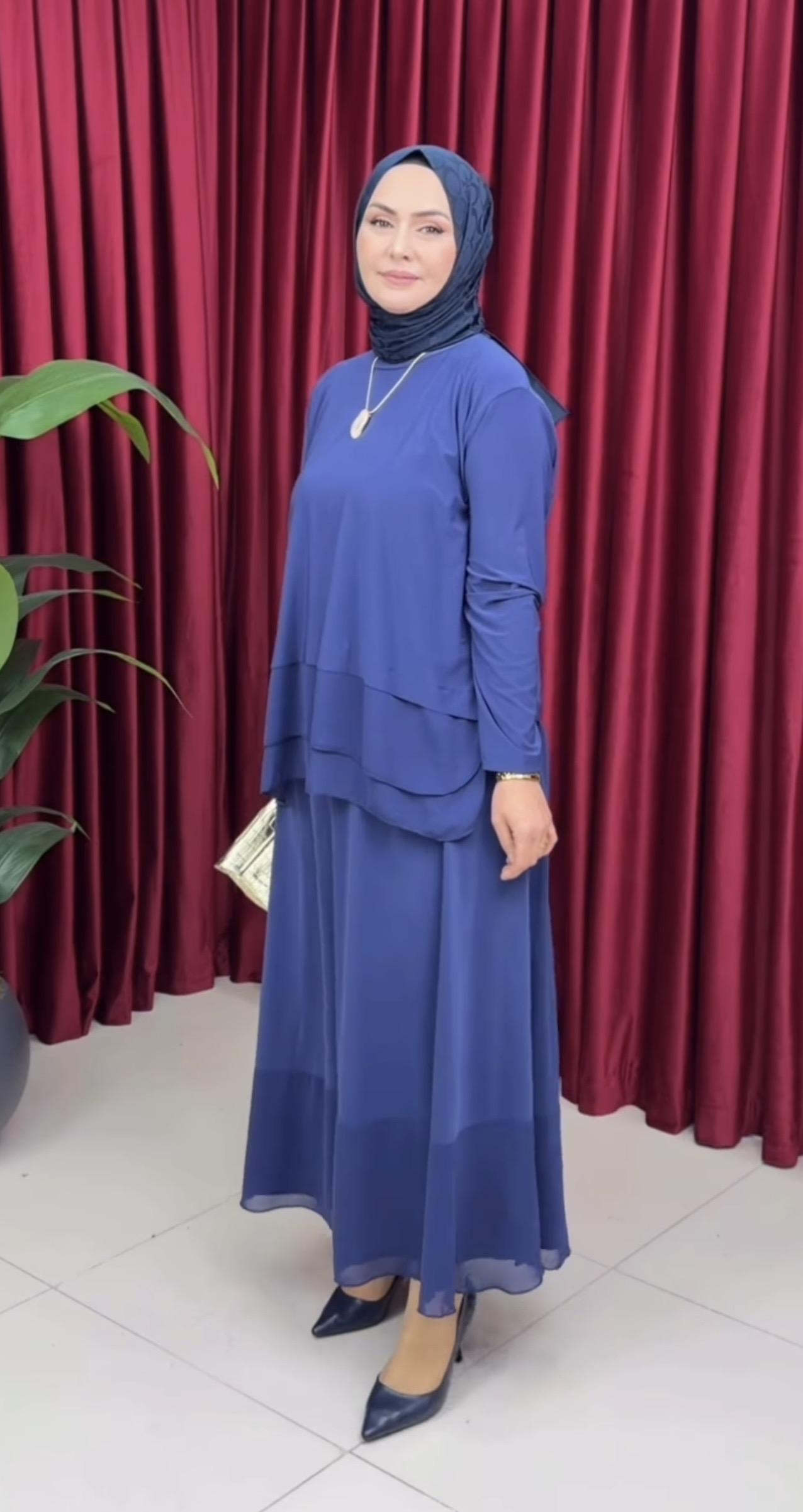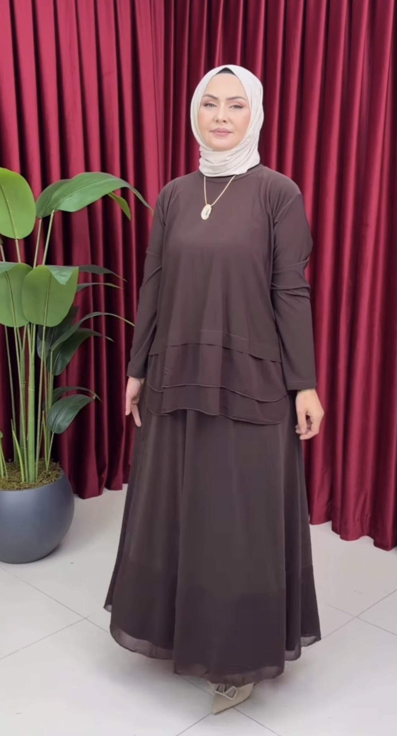 • Tasarım: Bluzun etek ucundaki zarif katlı şifon detayları, takıma hareketli ve modern bir hava katar.