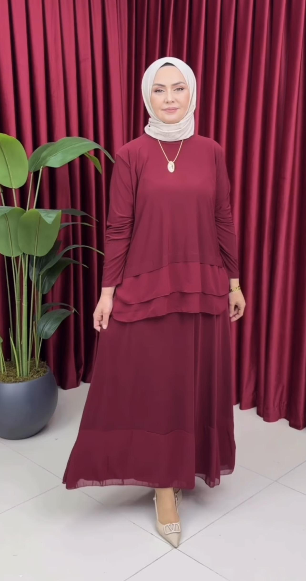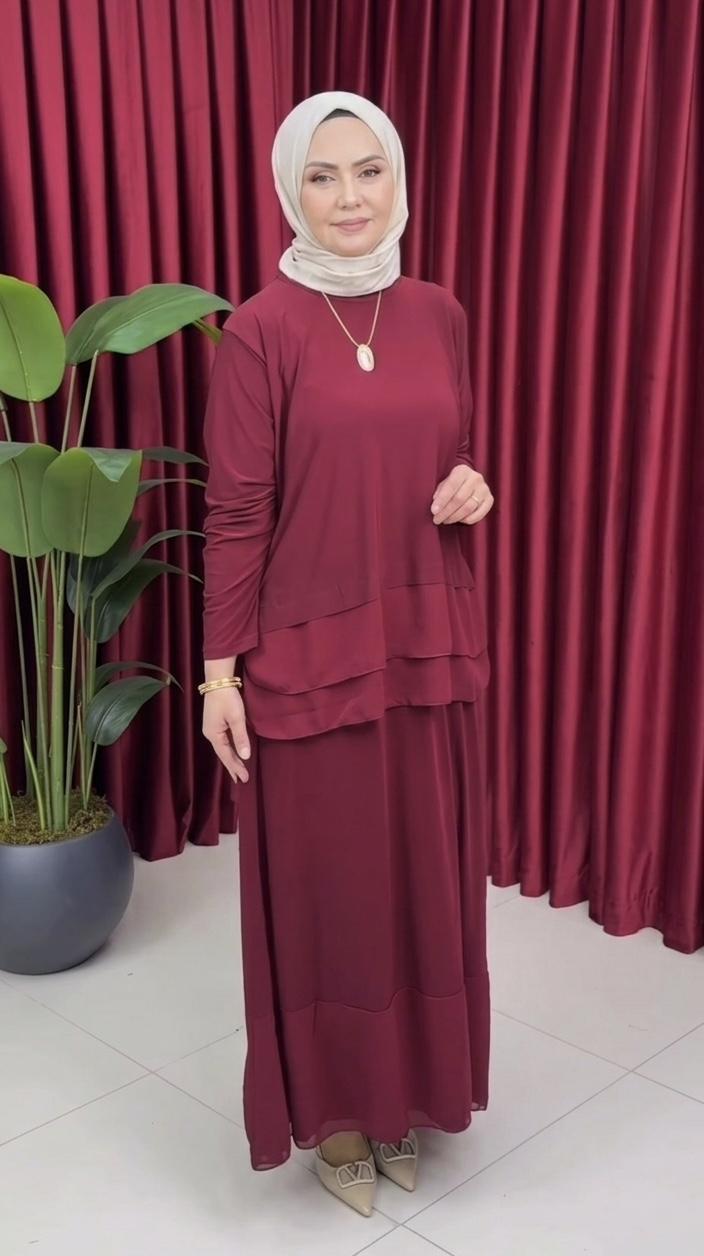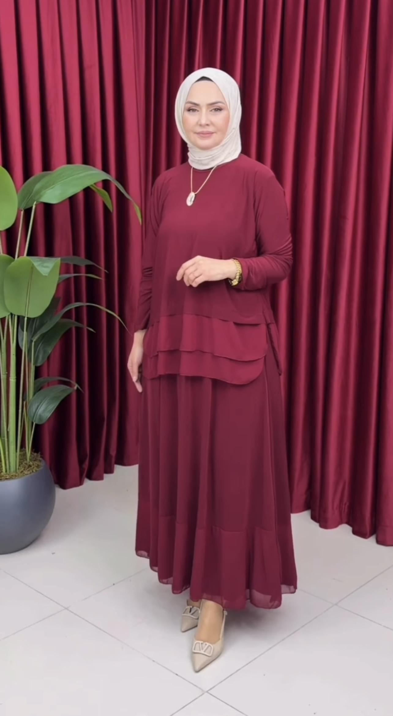 Zarafetin En Konforlu Hali: Sandy Şifon Detaylı Etekli Takım