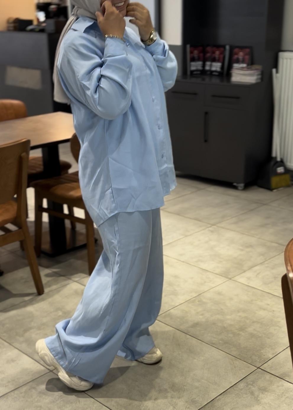 palazzo model geniş Paça önden düğmeli model gömlek yaka V kesim
